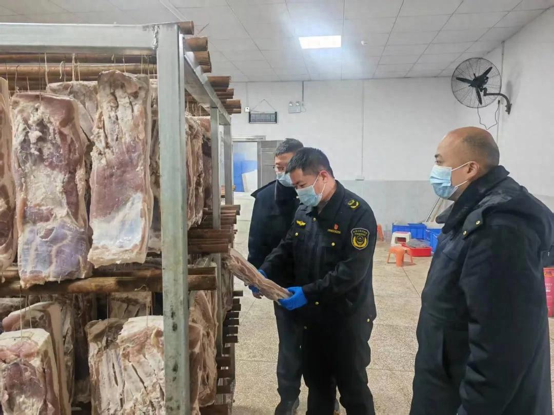 检查中,执法人员深入生产一线,仔细核验原料肉的动物检疫合格证明和肉品品质检验合格证,逐一核对进出货台账,确保所有原料来源清晰、票证齐全,杜绝来源不明、未经检疫或者检疫不合格的肉品流入生产加工环节。在生产车间,执法人员紧盯生产环境与工艺,从原料解冻、腌制到晾晒、熏制,对生产全过程进行全方位检查,既要尊重传统工艺,又要保障好食品安全。此外,执法人员还对产品包装、标签标识进行了规范指导,帮助企业对产品名称、配料表、生产日期等信息进行自查与修正。