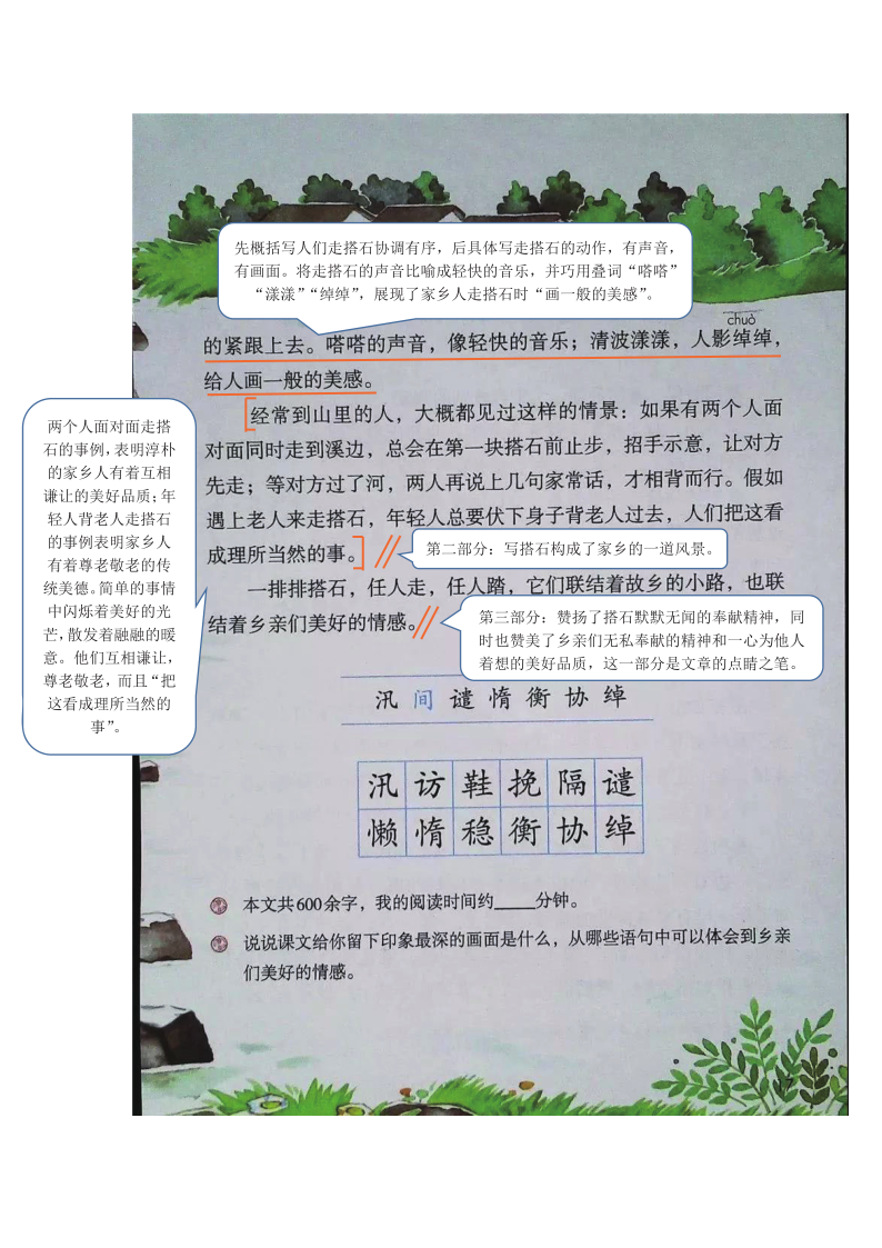 小学五年级上语文5课《搭石 》课堂笔记、阅读题及练习题