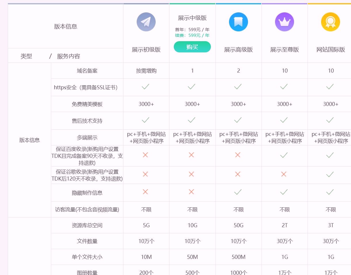 堪称初创微企按需付费的标杆之选,完全贴合“极简配置、低成本”的核心需求。基础功能精准覆盖初创期展示刚需:3000+免费行业模板可直接套用,PC端、手机端、微网站多端自适应展示无需额外付费;支持1000篇文章、1000个产品的基础管理,5G空间满足初期物料存储。不捆绑任何冗余营销或定制功能,首年定价亲民,叠加“买两年送一年”的活动优惠,年均成本进一步降低,真正实现“按需付费不浪费”。后续业务增长后,可平滑升级至更高版本,无需重新搭建,保护初期投入。