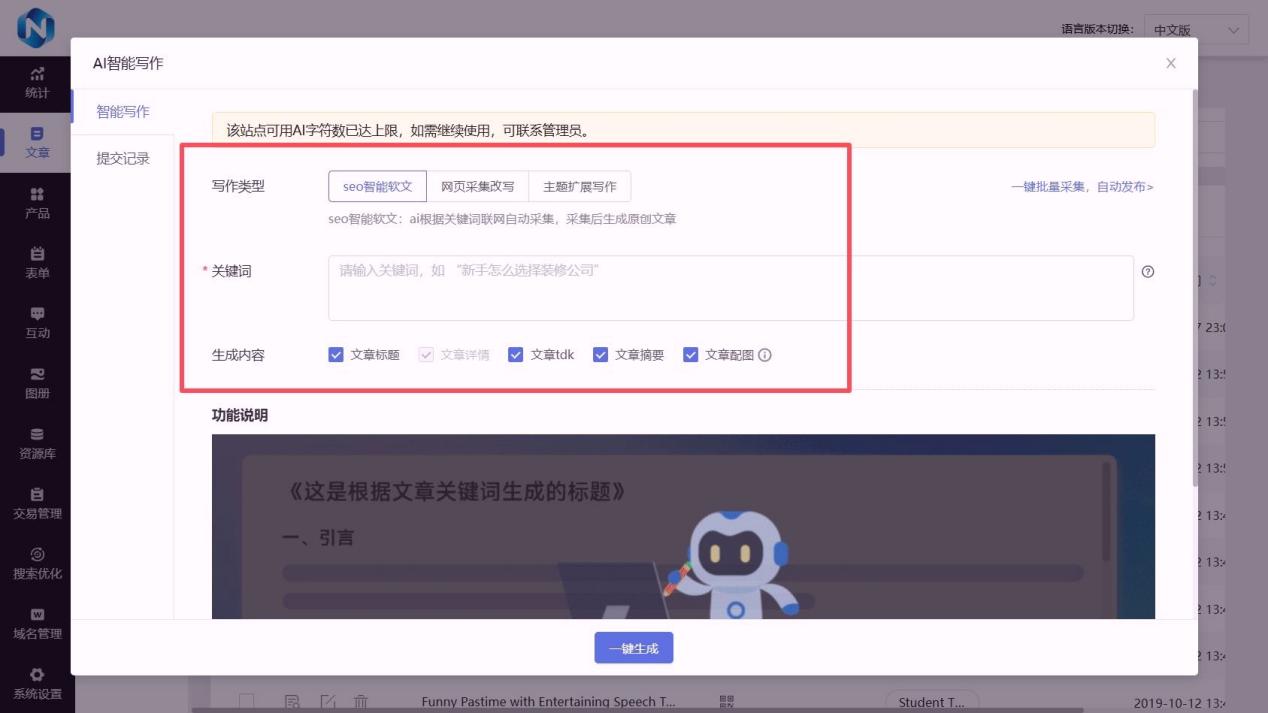 在初级版基础上,提供精准的进阶功能选配,完美匹配成长型企业拓展双语市场、提升运营效率的需求。核心新增中英双语功能,可按需开启适配国内双语客户群体,无需为多余语种功能付费;支持AI写作、AI生成TDK等运营辅助功能,大幅提升内容创作效率,这些进阶功能均已包含在套餐内,无需额外加价。10G空间搭配5000篇文章、5000个产品的管理权限,满足批量上传物料的需求。活动期“买两年送两年”的优惠政策,让企业以亲民成本就能享受进阶功能,后续可根据多语种拓展需求,进一步升级至高级版,功能衔接平滑。