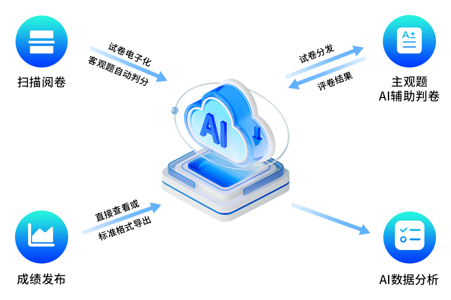 融智云考阅卷系统正是针对这些核心挑战而构建的智能化解决方案。它并未停留在简单“无纸化”层面,而是依托云计算、大数据与人工智能技术,重塑了从答题卡采集到分数生成的全流程。系统通过高清扫描与智能图像处理,实现答题内容的完整提取与自动结构化;其内置的AI评析引擎可完成客观题即时批改,并在主观题处理中引入语义分析、答案比对与智能评分建议,辅助教师进行精准打分,同时自动标记异常作答,保障评阅质量。