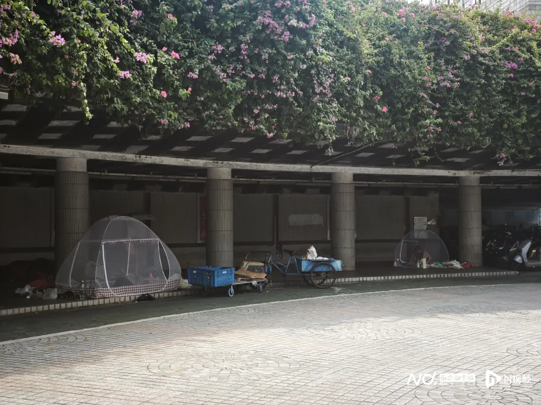 就连天桥底下的流浪汉,都喜提当地部门送出的“防蚊套餐”——蚊帐一顶。