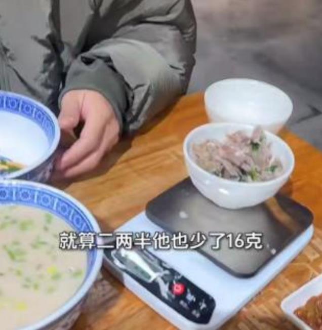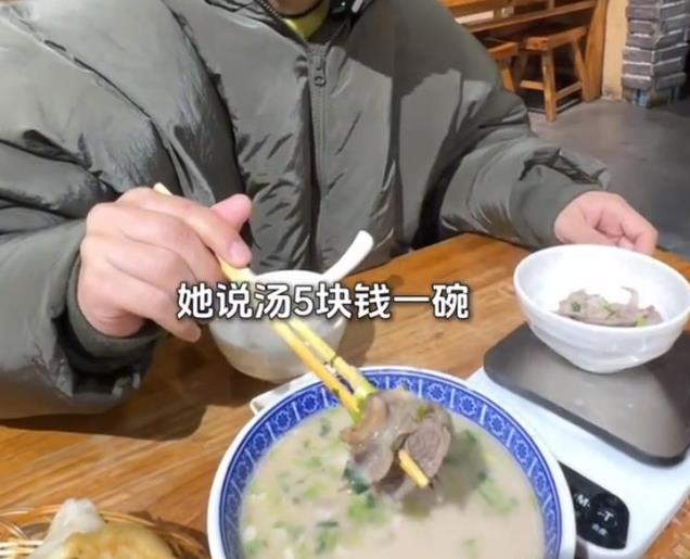 第一家,他来到了“徐家”,点了一碗30元钱的优质羊汤,但拿起自己的工具称发现,商家有缺斤少两的嫌疑。
