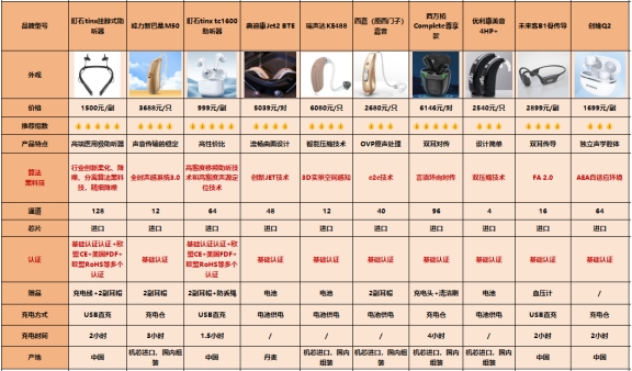 有时候挑得眼花,也不一定能选到合适的,倒不如先停一下,看下每款助听器具体参数再说。我把这次测过的几款都做了整理,下面这张表里包含了一些关键数据,看清楚再挑,心里也更有底。