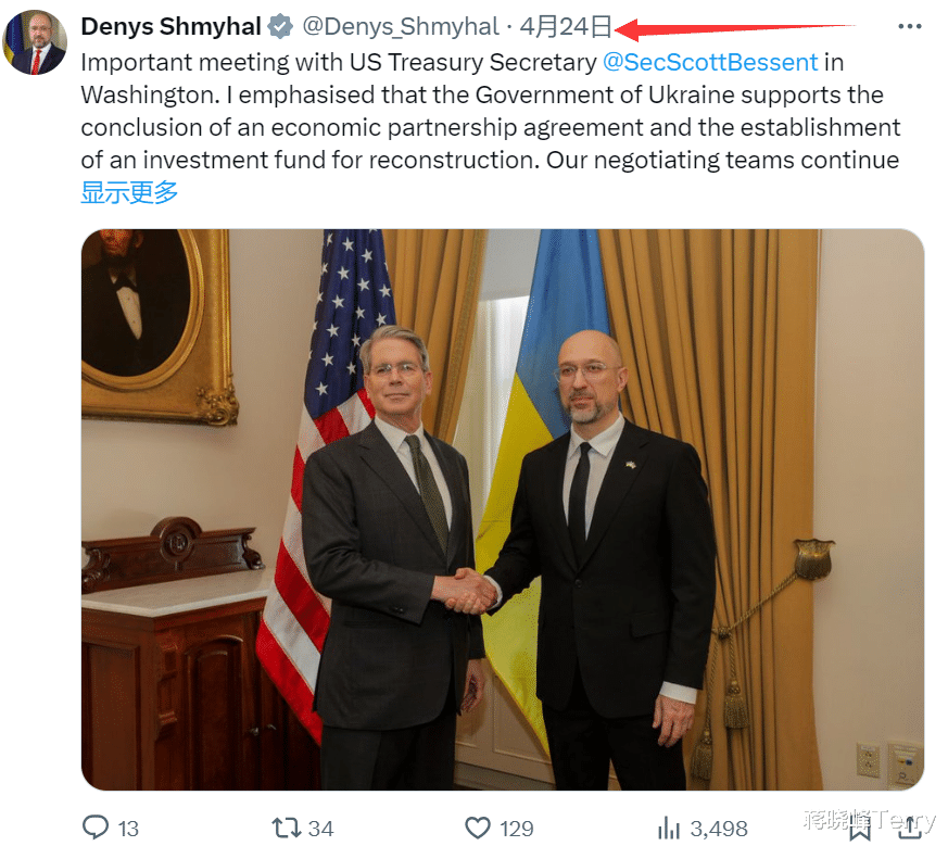 跟踪乌克兰总理什梅加尔的社交账号,乌克兰代表团其实早在一个礼拜前就已抵达华盛顿,专门等待特朗普就任100天时,作为“献礼工程”签署协议。