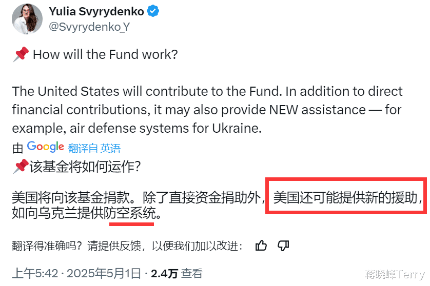 与此同时,美国与乌克兰于在4月30日签署矿产协议,内容没有纳入乌方希望取得的美国安全保证,但乌克兰成功争取到移除偿还条款,无需对美方提供的资金进行还款。也就是美国放弃了把拜登任内对乌3500亿美元军援看成贷款,且须经矿产协议偿还的要求。