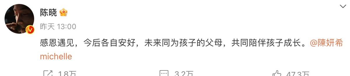 陈晓和陈妍希选择和平分手,说明他们都是成熟理智的人,我们应该尊重他们的选择。