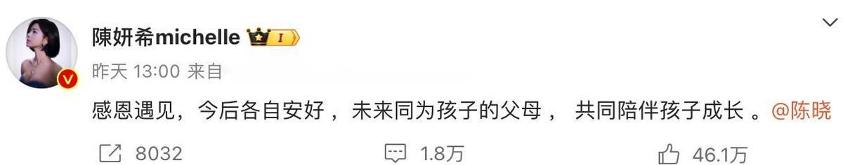 陈晓和陈妍希的离婚消息一出来,网上就炸开了锅,有人说早就看出来他们要离婚了,还有人说这是意料之中的事情,好像每个人都成了婚姻专家似的。