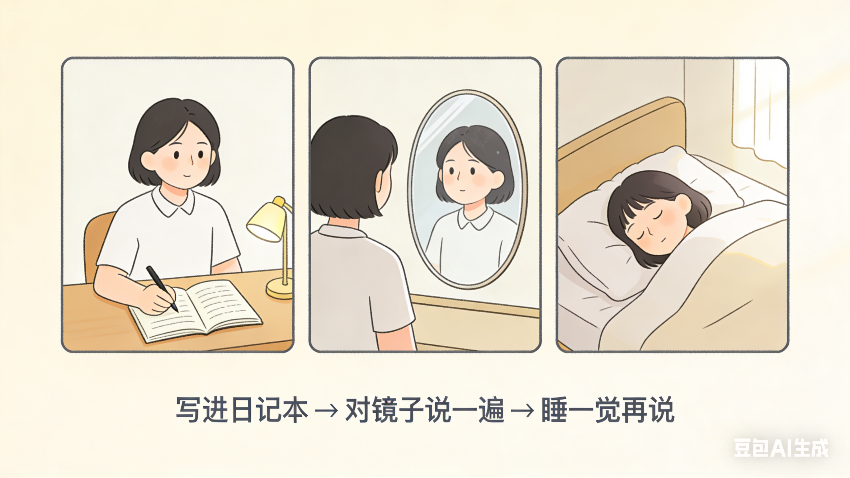 1. 先建“情绪缓冲带”:想给爸妈打电话倒情绪时,先停一停!先把烦恼写在日记本里,再对着镜子说一遍,最后睡一觉。你会发现,80%的负面情绪,睡一觉就忘了,根本不用麻烦爸妈。