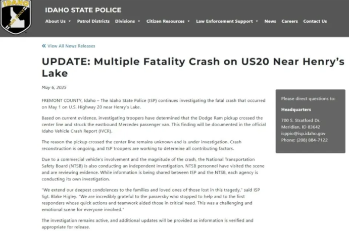 5月1日的傍晚,美国爱达荷州的20号公路上,一辆载着中国游客的奔驰高顶客车正驶向黄石国家公园。车上的游客或许正期待着即将见到的地热奇观,司机Daniel专注地握着方向盘,没人能想到,几秒后,一场致命的撞击将彻底改变一切。