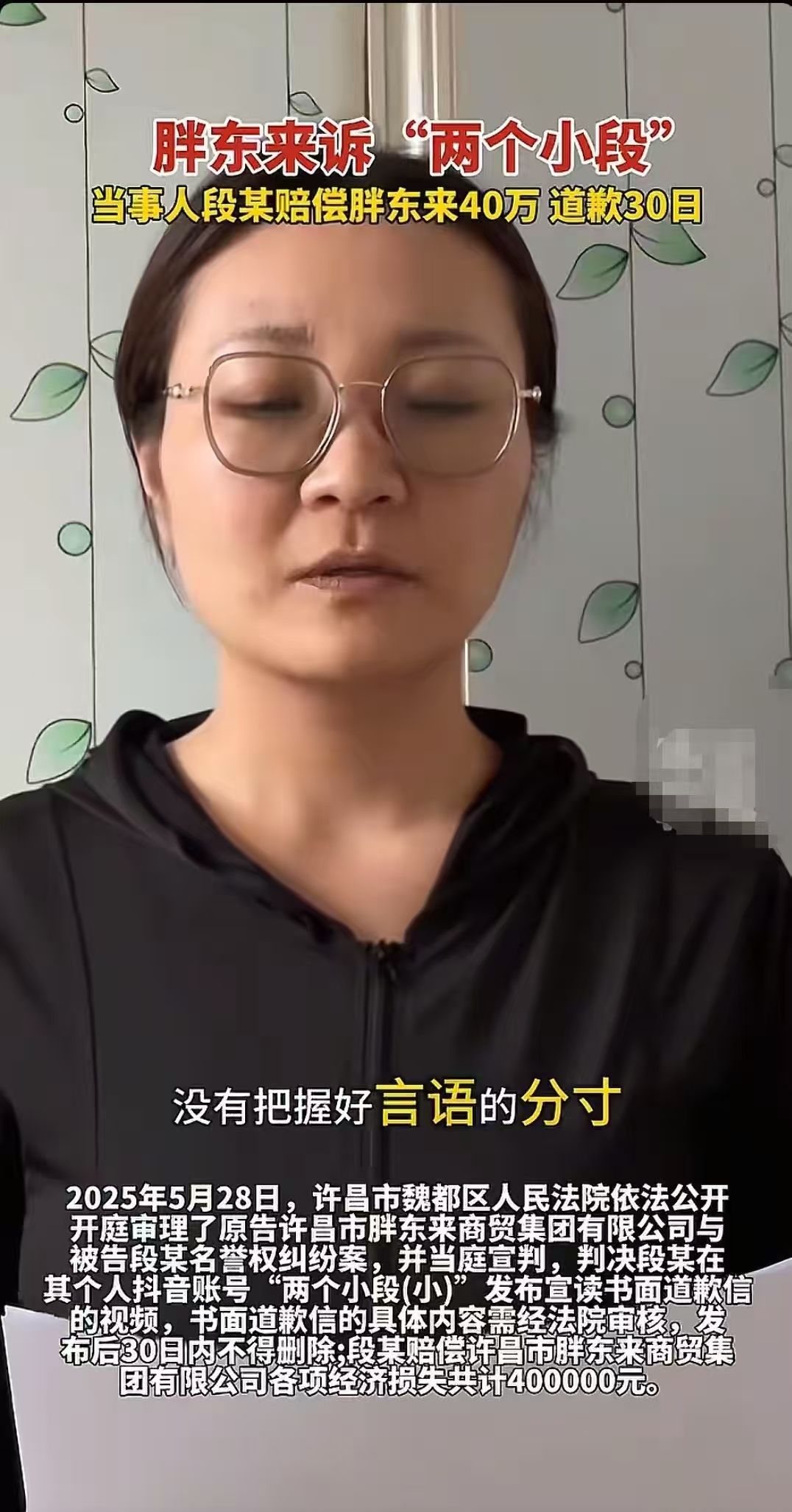 5月30号晚上九点,结果出来了——裤头姐不仅要赔偿40万,还得连续30天发布道歉视频!当晚,她就在自己的小号上更新了视频。视频里,她穿着黑外套,手里拿着稿子,面无表情地念着道歉内容,什么“20年忠实顾客”“特殊时期多亏商场帮忙”,说得一套一套的,可脸上却一点笑意都没有。网友们纷纷调侃:“这哪是道歉,分明是在演‘无奈营业’!”