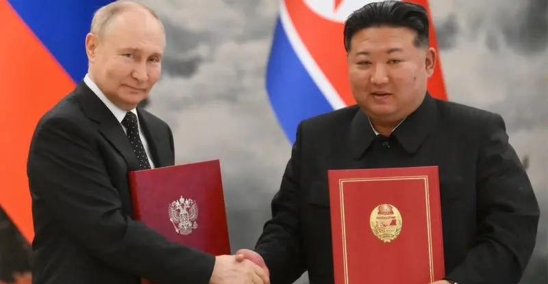 2024年6月19日,普京访朝,签订“全面战略伙伴关系”协议。 协议内容模糊,但外界普遍认为,俄罗斯承诺以粮食、石油、先进战斗机及核技术换取朝鲜的军事援助。 这场交易的核心,是俄罗斯在面临巨大军事压力时,试图寻求外部军事力量支持。
