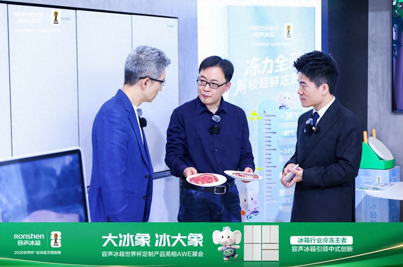 容声冰箱食品保鲜专家栾福磊博士迎上前,从外观设计切入介绍:“这就是我们的重磅新品——容声‘大冰象’冰箱。大家看它的腰线有98cm,比普通冰箱高15cm左右,我们形象地称它为‘大长腿冰箱’。”董宇辉敏锐地接话道:“腰线提高了,这意味着冷冻室的空间变大了。”栾博士点头肯定,并进一步阐释:这正是容声针对中国家庭囤货需求所做的“中式创新”——打破行业传统形态,打造真正懂中国家庭的冰箱。