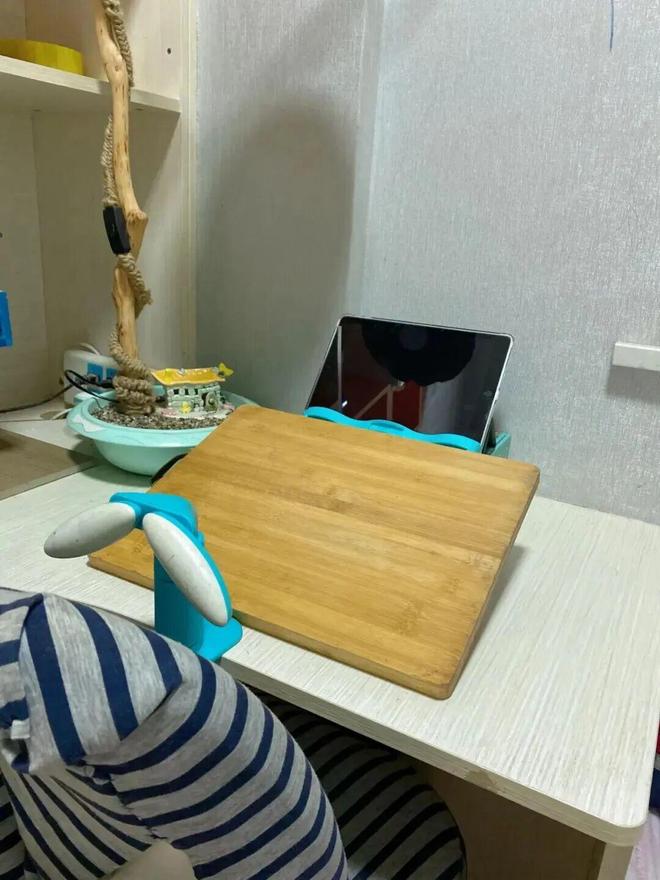 只需要找一个稳定的支撑,再将菜板竖立起来,固定好角度就可以了。这样不仅能帮助孩子端正坐姿,学习也更舒适有效率了。
