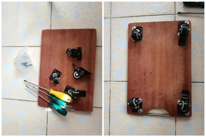 家里的绿植太大,每次移动搬动都很不方便?只需要买4个万向轮装到旧菜板上,就变成一个可移动的支架了。
