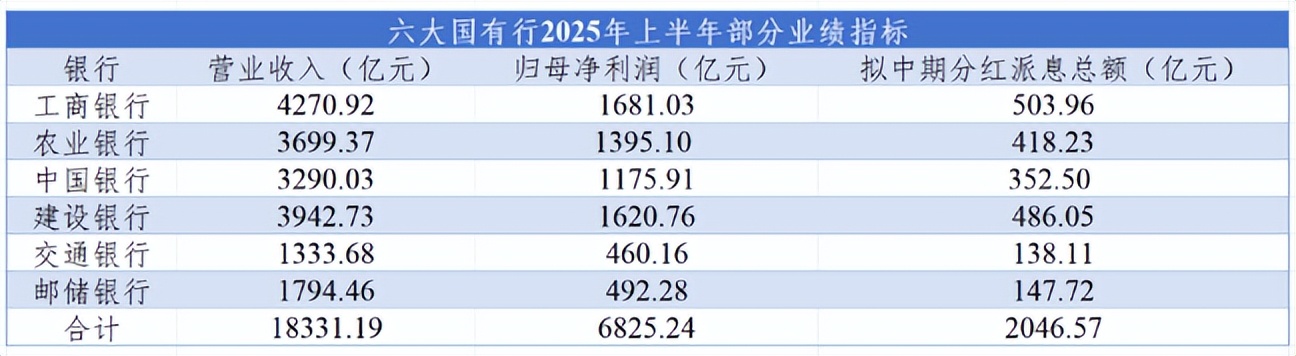 六大国有行合计分红2046.57亿,分红比例均保持在归母净利润30%的水平。