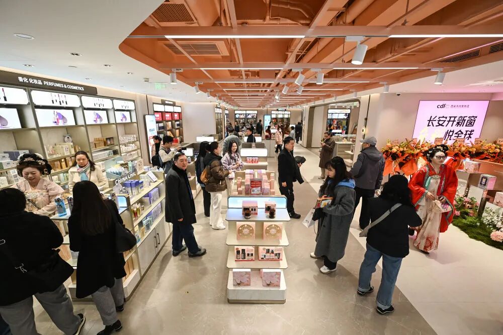 11月26日,顾客在西安市内免税店有税商品区选购商品。图/新华社