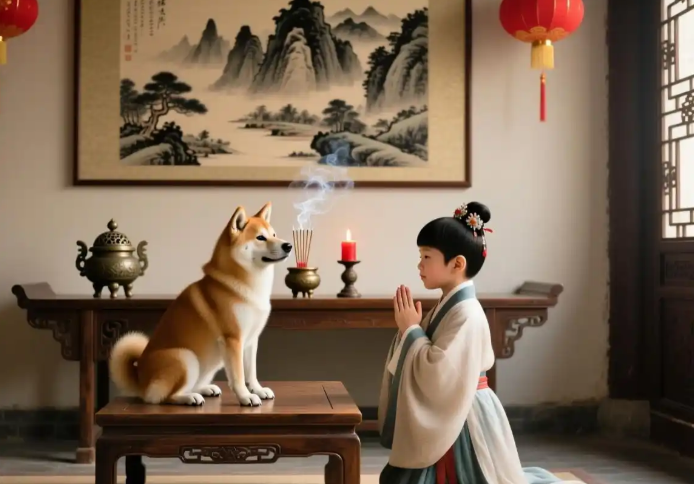 狗狗安静地受着,它可能永远不理解“磕头”的含义,