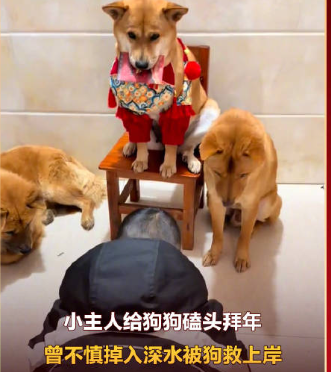 男孩为什么会给狗狗磕头。