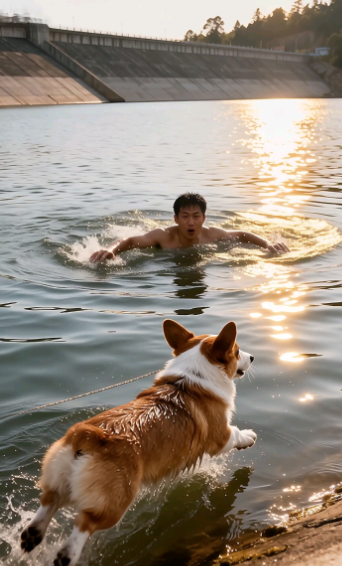 而狗狗自己,上岸后瘫倒在地,