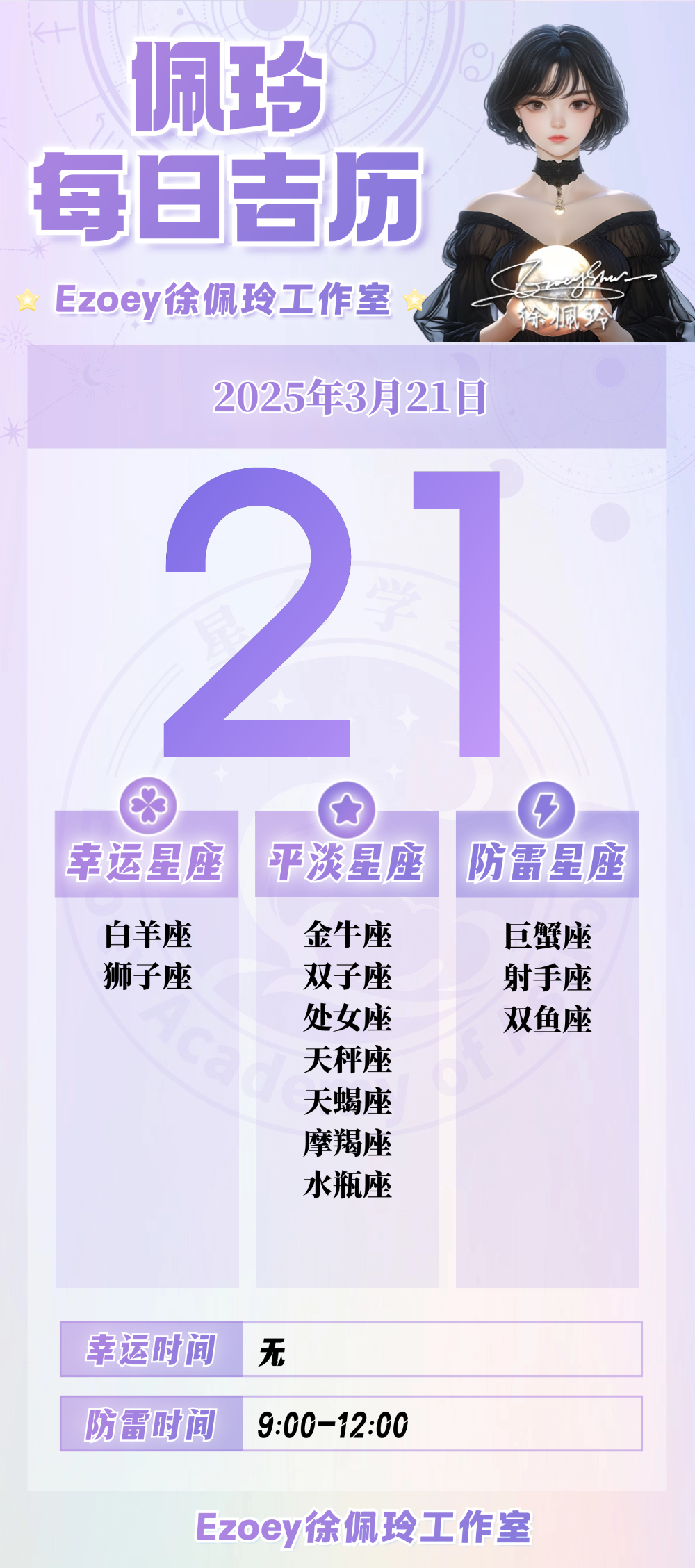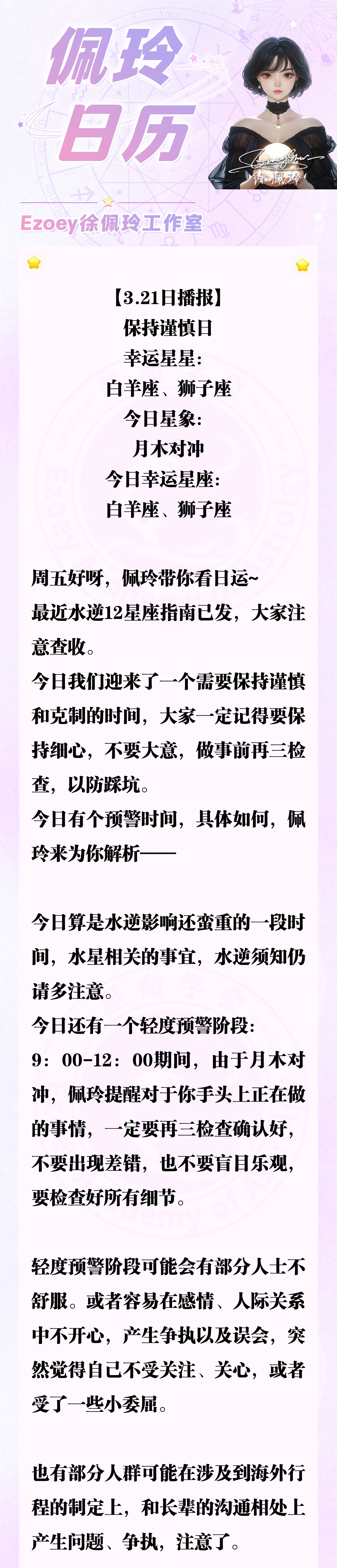【3.21日播报】保持谨慎日 幸运星星:白羊座、狮子座—Ezoey徐佩玲25年星座播报