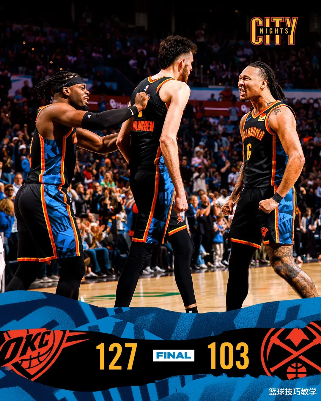 裁判的无动于衷间接让掘金的士气跌至谷底,自然也等不来后续逆转的戏码,再度被连投带罚的雷霆带走比赛。