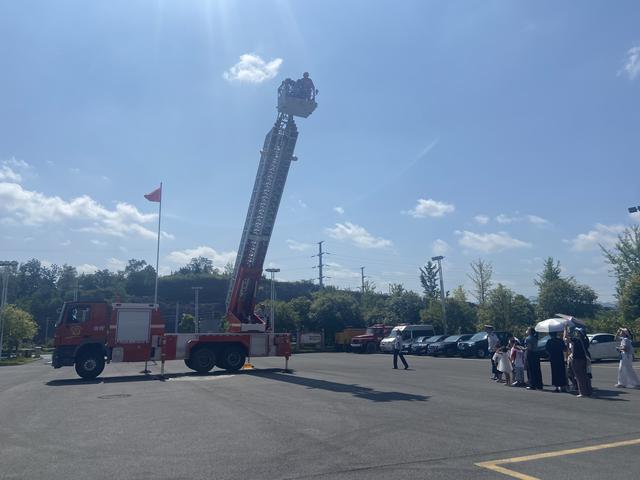 活动中,小读者们为消防战士献上了他们准备已久的诗歌朗诵《烈火英雄》,纷纷向消防战士们敬礼致敬,近距离与心中的偶像在图书车前共读一本绘本,零距离体验消防服、消防车,参观了消防教育科普馆,还在消防员的指导下学习使用了灭火器、水枪灭火,最后在消防员的带领和保护下登上了“消防明星车”——云梯车。虽然天气很热,但也阻挡不了小读者们探秘消防的心情,活动场面热闹非凡。