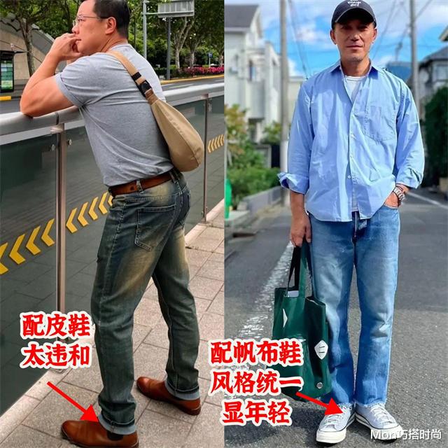 在很多人的印象中,皮鞋似乎是男士穿搭的标配之一,当牛仔裤与皮鞋搭配时,却很容易出现违和感,尤其是对于中年男人来说,这种搭配方式如果处理不好,就会显得不伦不类。