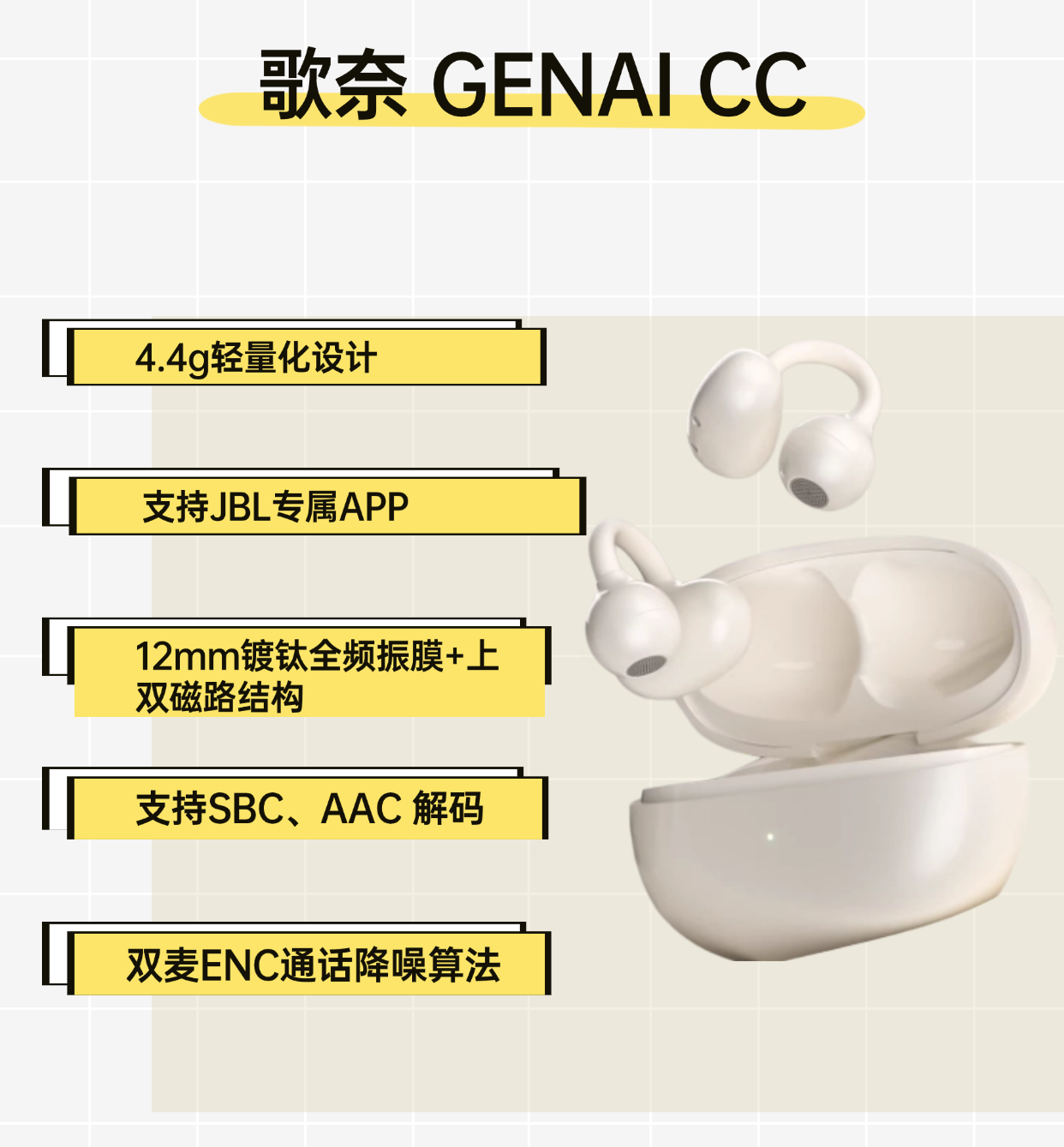 二、耳夹式耳机推荐1、歌奈 GENAI CC