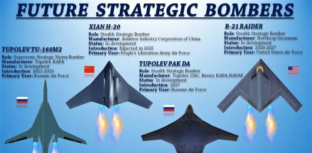 在战略轰炸机领域,B-21和H-20的竞争象征着两国对于全球军事主导地位的争夺。这不仅是技术实力的较量,更是国家安全战略的一部分。两国都在努力提高飞机的隐身性能电子战能力和作战灵活性,以适应未来多样化的战争场景。