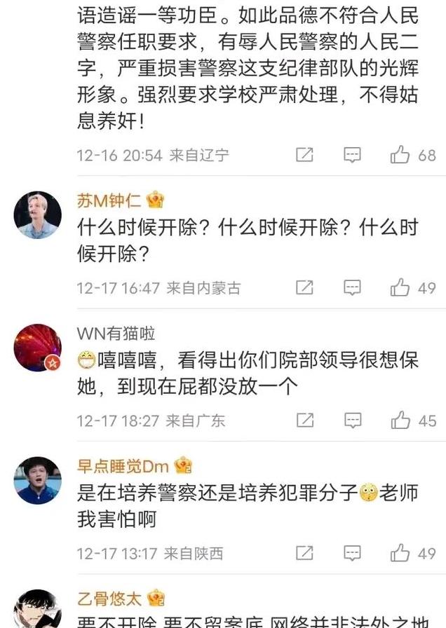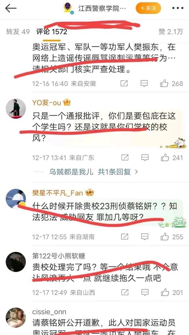 在江西警察学院的官方账号下,网友们纷纷留言要求蔡某公开道歉。评论区里,要求道歉的声音一浪高过一浪,形成了一股强大的舆论力量。
