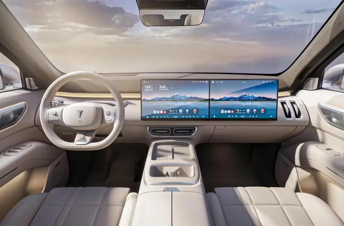 在乘坐舒适性方面,深蓝S09的座椅设计可谓是下足了功夫。前排座椅的8点式按摩、通风、加热功能,可以有效缓解驾驶疲劳。中排座椅更是采用了“行业唯一可横滑”的设计,乘客可以根据自己的需求调整座椅位置,获得更加舒适的乘坐空间。后排座椅同样支持加热功能,照顾到了每一位乘客的需求。深蓝S09还配备了2.5K分辨率的双联屏,以及43英寸的AR-HUD和21.4英寸的后排娱乐屏,为乘客提供丰富的娱乐选择。
