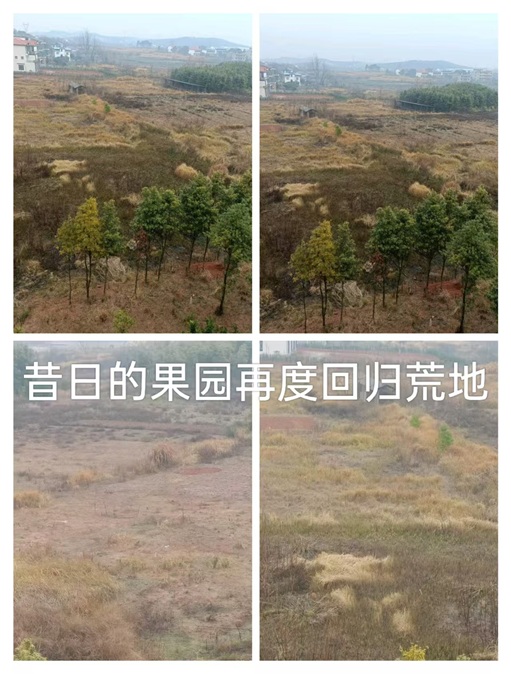 更荒唐的是,果园挖掉后,他们倒是真搞了“还耕”:镇政府工作人员拉来几捆玉米苗稀稀拉拉栽上,拍几张照片,算是交了差,完成了“政绩”。拍完照,地就这么荒着,如今杂草长得比人高。我的租期还有二十年,合同还在,果树没了,地荒了,我的人证物证,全成了废纸。
