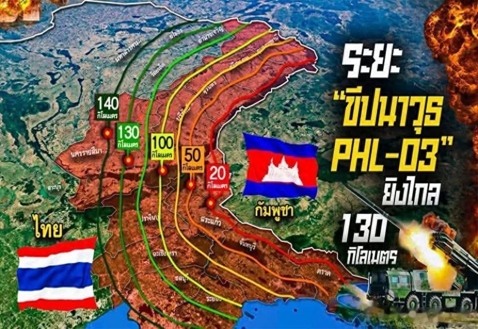 中国的远火在小国等同于战略武器,而在泰柬冲突里中式远火成焦点,柬埔寨军队手里的03式远程火箭炮让泰国军队忌惮,泰军卫士系列远程火箭炮,也让柬埔寨军队有所顾虑,双方都怕先动远火遭报复。而且两国都没法生产弹药,都需要中国支持。泰国与柬埔寨大打出手,双方拿着中国的矛和盾结结实实地在战场上你攻我防、我攻他挡的实战热剧!结果、结果是、又一次证明了中国矛不错,盾也不错。柬泰两国都是中国的友好邻邦,都是东盟重要成员,中国爱好和平,当然不希望两国兵戈相见,早日停火讲和,早日恢复和平,早日建设家国。