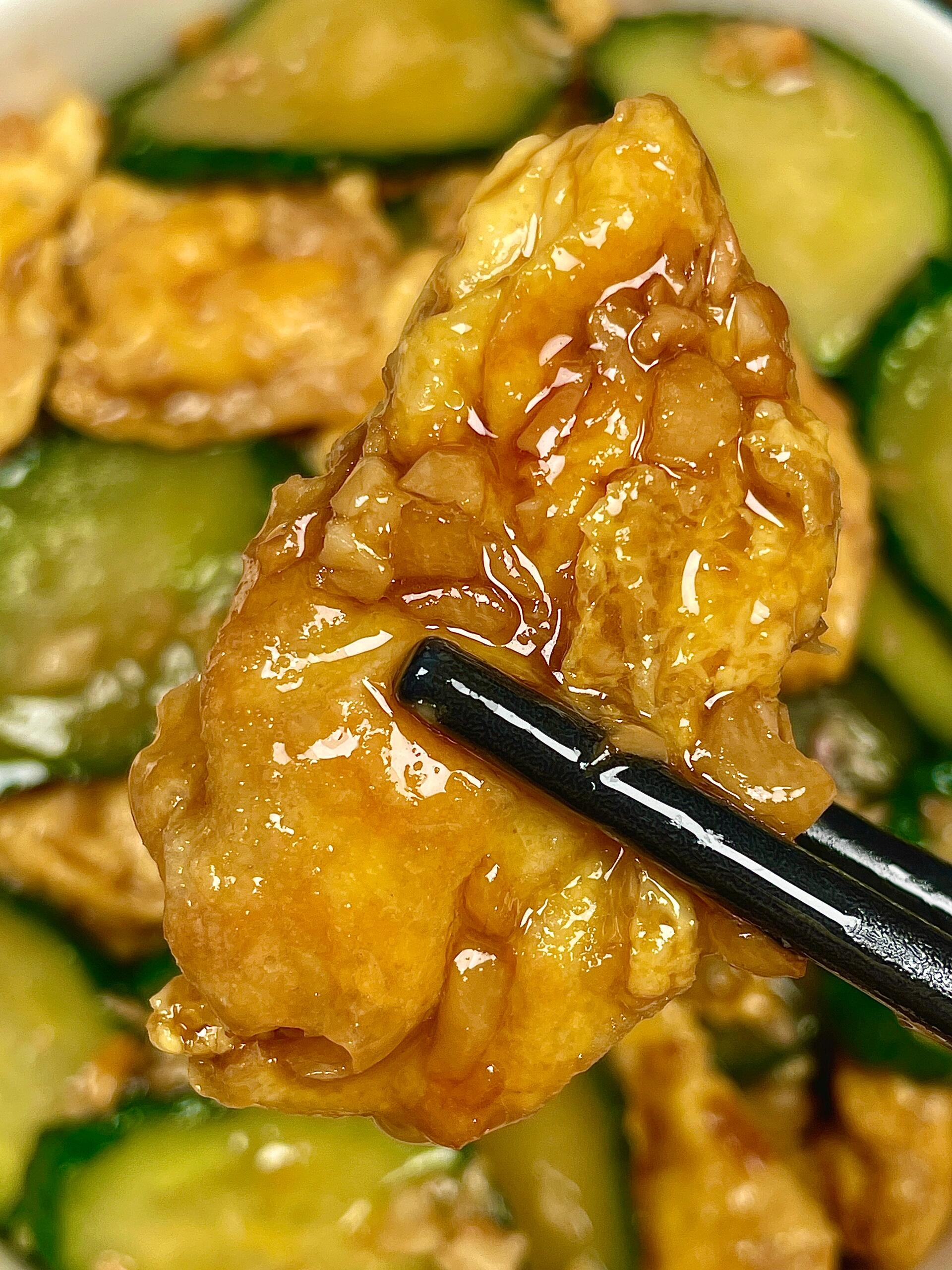 翻炒均匀后,尝一口,黄瓜脆嫩,鸡蛋香滑,咸鲜适中,这时候就可以关火出锅了!