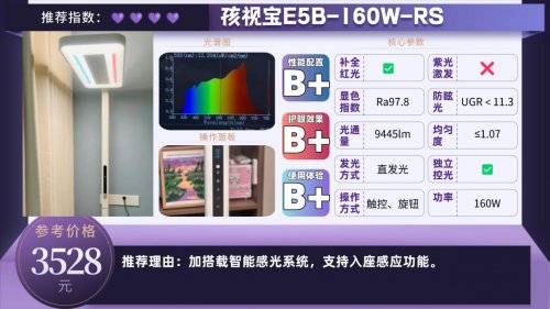 护眼大路灯第四名:孩视宝E5B-160W-RS;加搭载智能感光系统,支持入座感应功能。