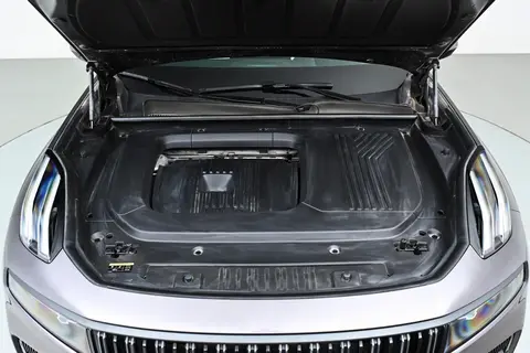 外观设计延续了领克的“都市对立美学”,新增的细节挺对家用用户的胃口。直瀑式前格栅采用黑色处理,搭配镀铬饰条点缀,不显得沉闷,还自带几分运动气息,不会太商务也不会太浮夸,日常开出去很百搭。LED大灯组造型犀利,Ultra版配备矩阵式光源和随动转向功能,晚上开车能根据路况调整照射范围,过弯时视野更从容,我之前开朋友的车,过弯时总觉得灯光照不到侧面,这款车就没这个问题,夜间行车安全感要强些。车身侧面线条流畅舒展,5042mm的车长和2984mm的轴距让整车比例协调,没有大尺寸SUV常见的臃肿感,停车时也不会觉得太费劲,就算是新手,在小区狭窄的车位也能轻松停进去。新增的20英寸光晖轮毂是领克900同款,多辐式造型搭配双色切削工艺,静态看张力十足,搭配255宽度的轮胎,抓地力和颜值都兼顾到了,个人觉得比老款轮毂质感更足。感应式隐藏门把手是全系标配,解锁时自然弹出,关门后与车身贴合紧密,能优化风阻,冬天若遇到结冰,可能需要短暂等待解冻,不过我们这边冬天不算太冷,这种情况很少遇到,日常使用基本不受影响。车尾的贯穿式LED尾灯做了熏黑处理,夜间点亮后辨识度高,下方的银色护板与车头呼应,整体风格统一,双边共四出的排气布局也为整车增添了几分运动质感,不像有些车型的假排气,看着缺乏诚意。