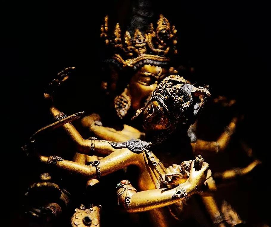 第四层的双身佛是佛教中的“欲天”和“爱神”两位,男身代表的是法,女身代表的是智慧,男女相拥代表合二为一,法和智慧的结合,力量无穷。