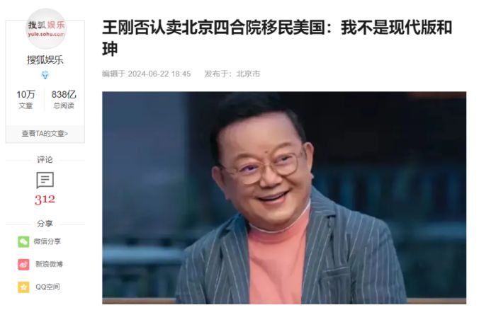 但王刚老师却笑着回应:“我又不是现代版的和珅,哪来价值上亿 的四合院!”