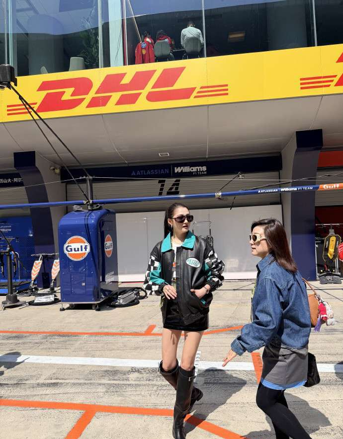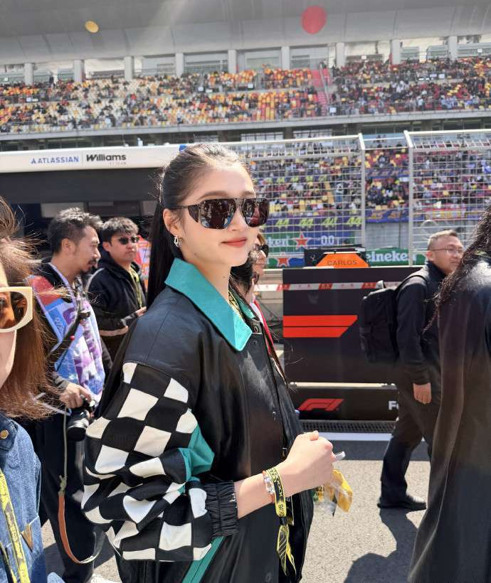 再加上一副墨镜,整个造型酷劲十足,瞬间变得更加吸引眼球。无论是在人群中穿梭,还是与赛车手同框,关晓彤那高挑的身材和绝佳的比例总是格外突出,给人一种如同模特般的视觉冲击。站在她旁边的人,仿佛都显得稍微矮小了几分。