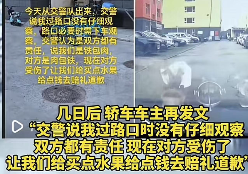 二:交警劝司机赔礼道歉眼见司机不愿承担赔偿责任,女子遂将此事闹到了交警队,声称这是典型的“无接触交通事故”,需要司机赔偿医疗费,误工费等。