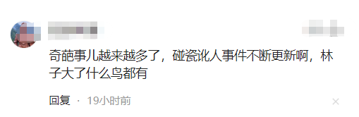 还有位网友认为像女子事情这类奇葩事儿越来越多了,碰瓷讹人事件不断更新,林子大了什么鸟都有。