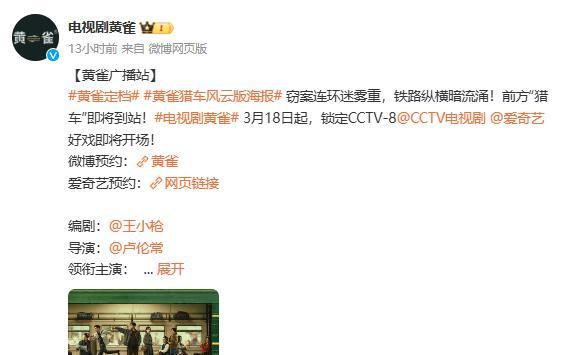 而《黄雀》不仅上星央视,还有金牌主创团队保驾护航,更有望成为三月的一匹黑马。
