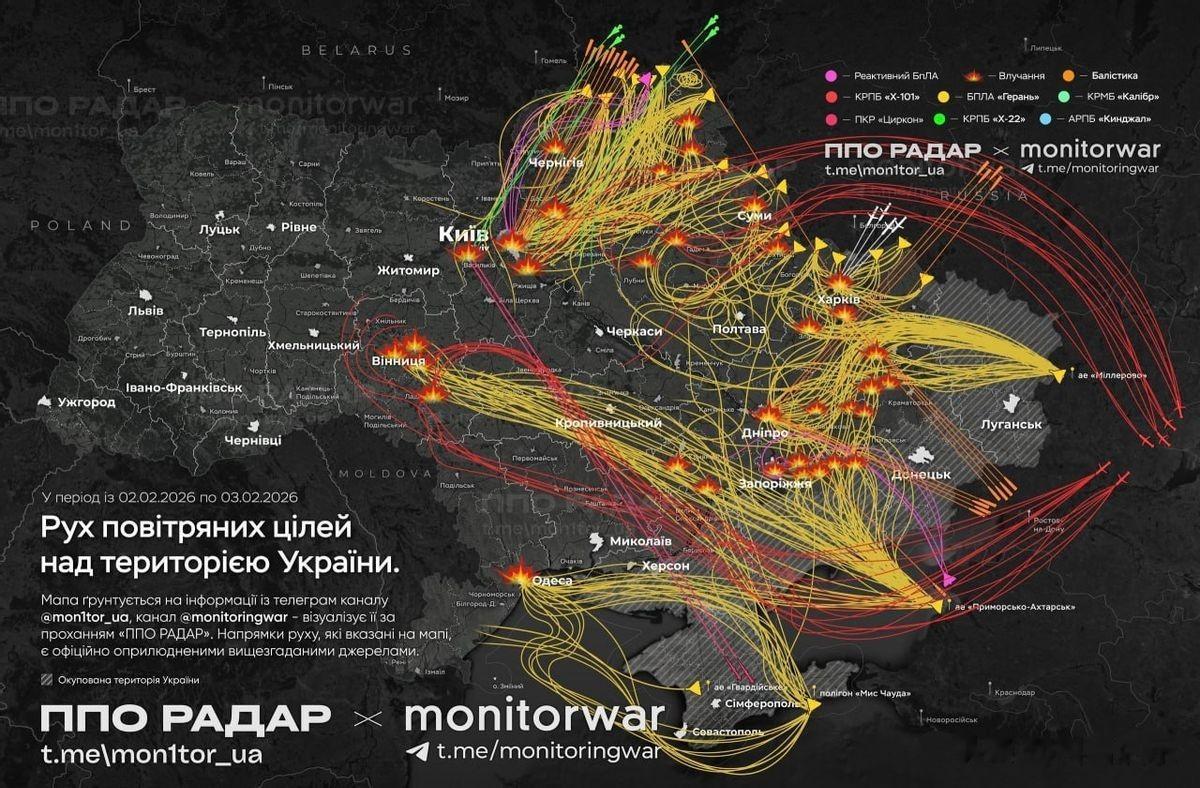 01,俄乌谈判开始前,乌克兰遭30天来最大规模打击据乌媒消息,当地时间2月2日夜间至3日凌晨,乌克兰能源设施遭遇近30天最大规模混合攻击。情报表明,俄陆海空三军协同行动,发射350架各型无人机、30枚巡航导弹、27枚弹道导弹,还有疑似高超音速导弹及“龙卷风-S”多管火箭炮火箭弹等,对基辅、哈尔科夫等乌方控制的多个州发动打击。