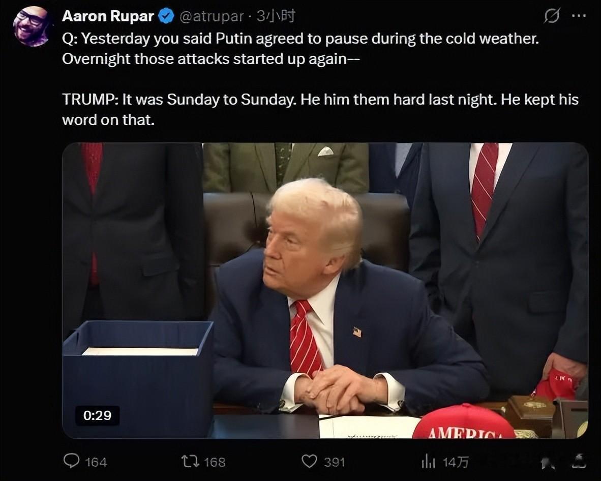 俄罗斯确实应美方呼吁,给了特朗普“面子”,暂停了对乌能源设施的空袭。