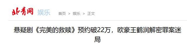 北青网|悬疑剧《完美的救赎》预约破22万,欧豪王鹤润解密罪案迷局
