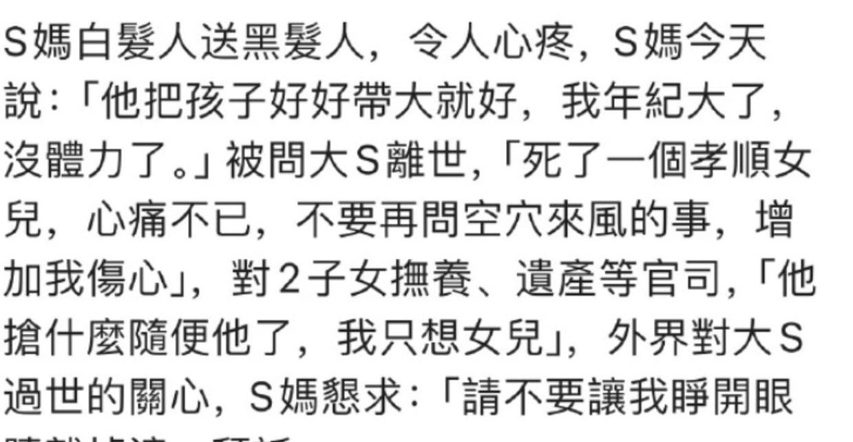 之前S妈为了遗产的事和汪小菲闹得不可开交,又是争抚养权,又是各种爆料。