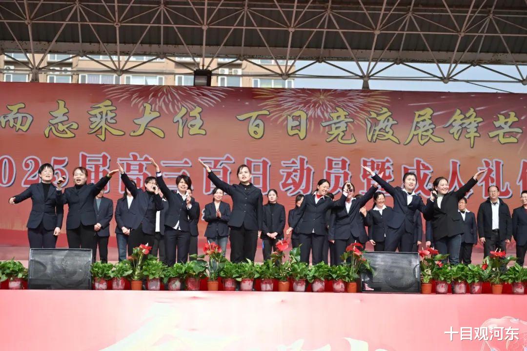 近千名学子高举右拳庄严宣誓:“以勤为舟,横渡学海千重浪;以志为刃,斩破书山万仞峰!2025,高考必胜!”