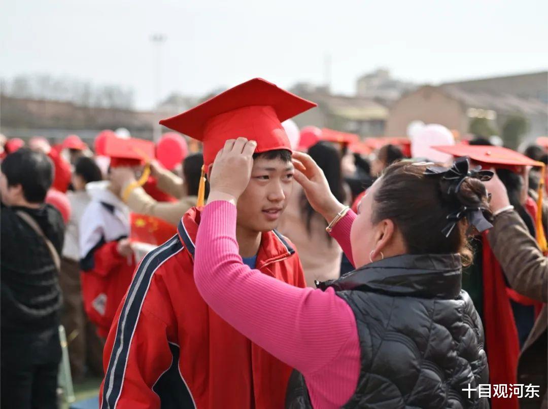 各位家长为孩子戴上成人帽,整理帽穗,象征着责任的传承与青春的启航,同时家长与孩子交换书信,父母信笺承载岁月叮咛,子女笔墨镌刻成长宣言,这份横跨两代人的无声交流,已化作眼角相映的泪光。随后,学子们向父母三鞠躬:一谢养育之恩,二承教诲之情,三立反哺之志。相拥时泛起的泪光,凝结着十八载春秋的温度。