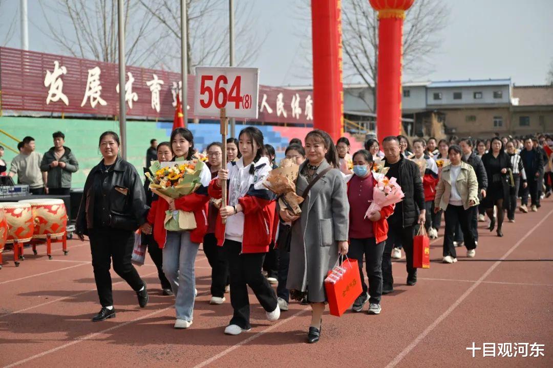 近千名师生家长齐聚绿茵场,在主持人解建奇书记铿锵有力的开场声中,高三学子与家长方阵踏着节拍昂然入场。步履间扬起青春热浪,以破竹之势揭开高考百日冲刺的壮阔篇章。